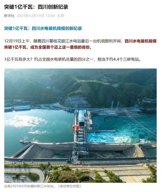 突破1億千瓦:四川水電裝機(jī)規(guī)模創(chuàng)新紀(jì)錄