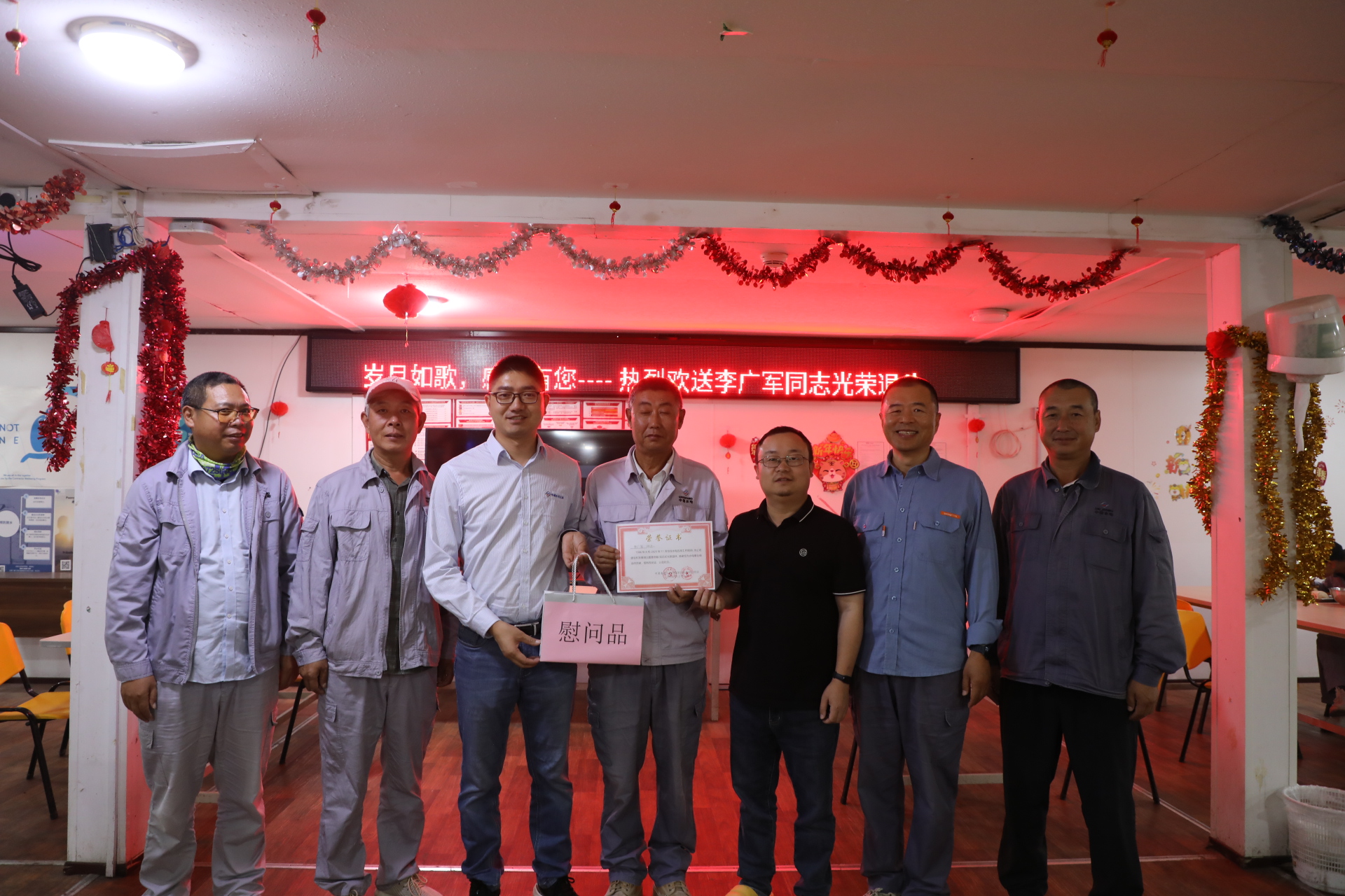 2025年12月4日,沙特國王港項(xiàng)目工會(huì)為輔助工區(qū)李廣軍舉行了一場(chǎng)簡(jiǎn)樸而溫馨的榮譽(yù)退休歡送會(huì)。