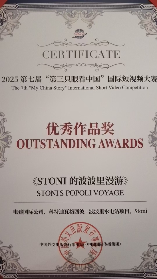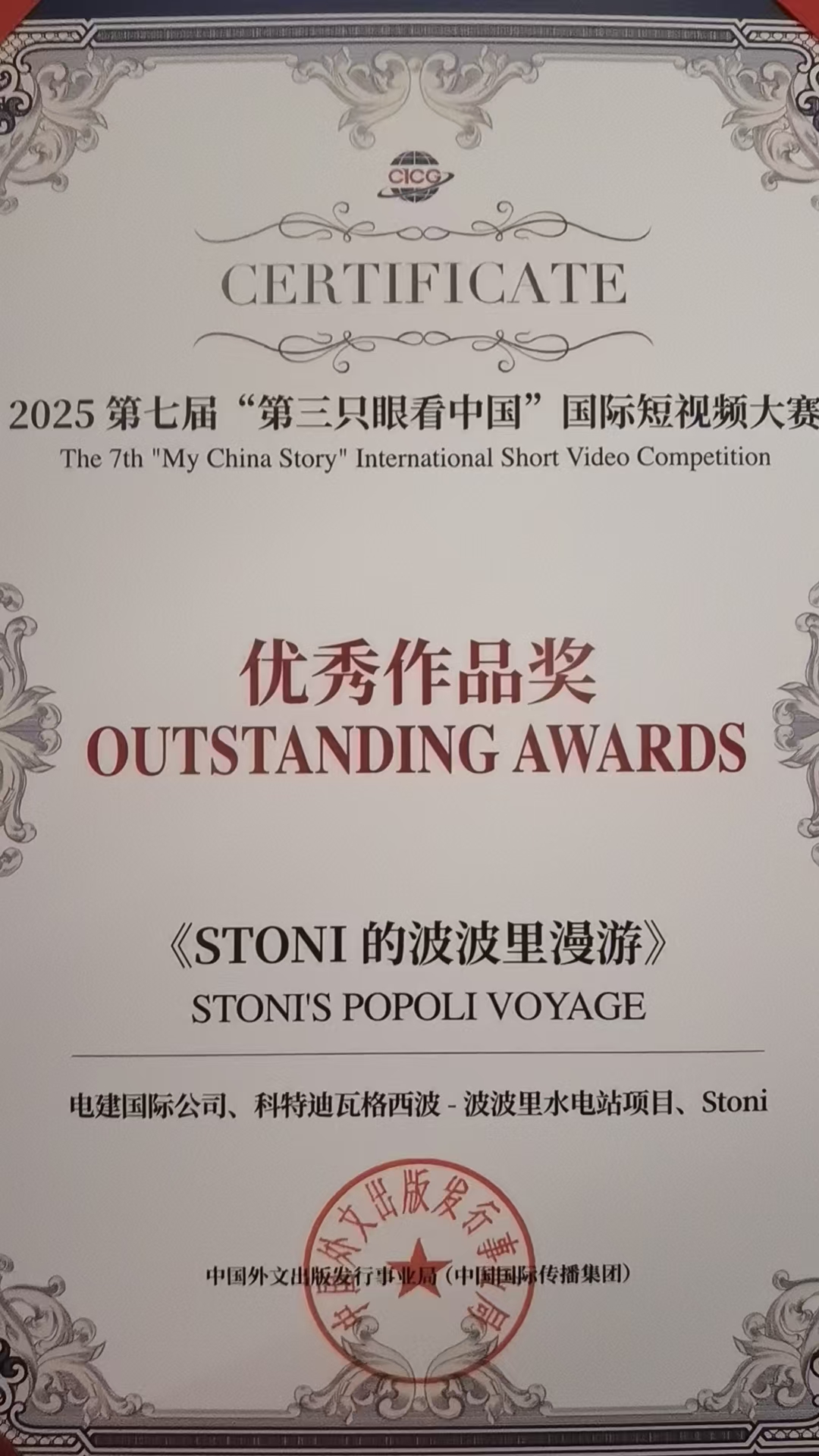 12月20日,2025年第七屆“第三只眼看中國(guó)”國(guó)際短視頻大賽評(píng)選結(jié)果正式揭曉。經(jīng)傳媒、影視、互聯(lián)網(wǎng)及國(guó)際傳播領(lǐng)域十余位中外籍專業(yè)評(píng)委的多輪嚴(yán)格評(píng)審,由公司科特迪瓦波波里電站項(xiàng)目部參與拍攝,中國(guó)電建集團(tuán)國(guó)際工程有限公司組織并報(bào)送的作品《Stoni的波波里漫游》,從眾多參賽作品中脫穎而出,榮獲大賽企業(yè)競(jìng)賽單元“優(yōu)秀作品獎(jiǎng)”。