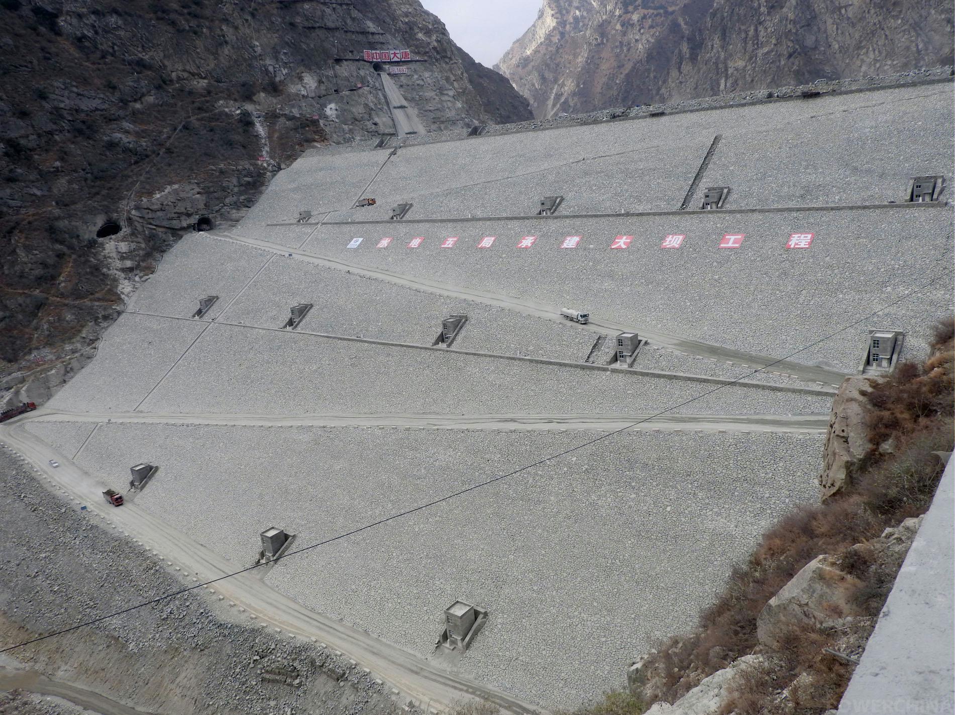 建設(shè)中的240米高的長(zhǎng)河壩水電站土石壩工程