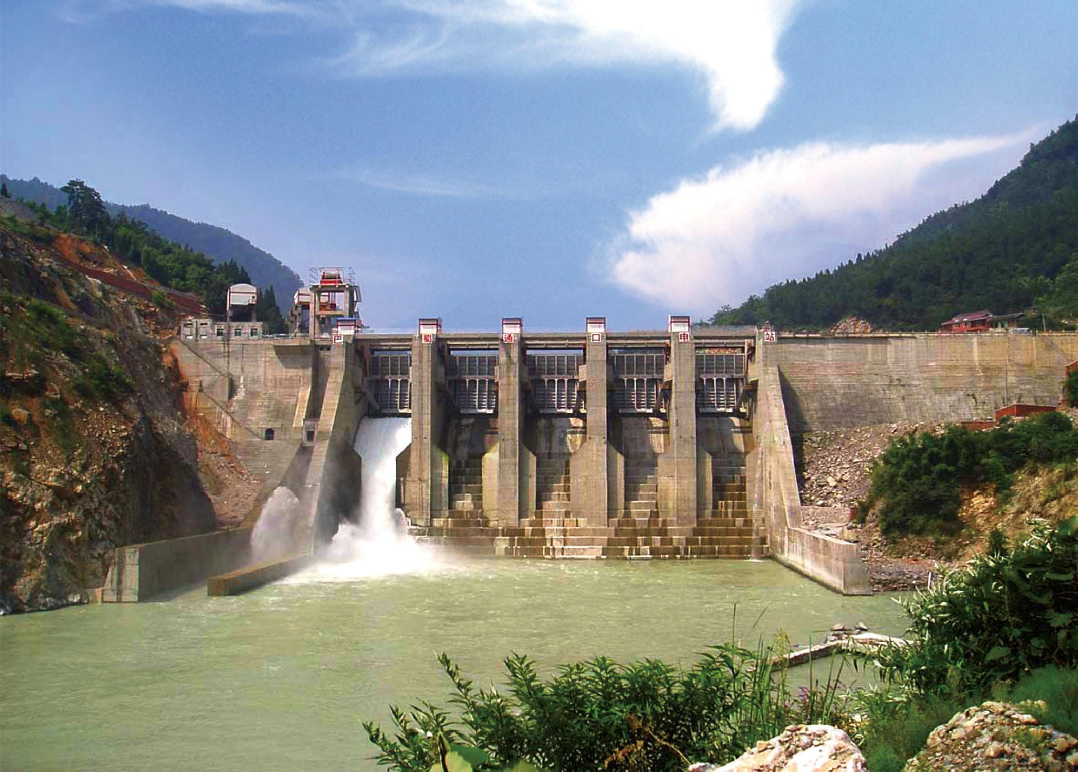 四川北川通口水電站碾壓混凝土壩。成功抵御“5.12”特大地震及唐家山堰塞湖5980立方米/秒洪峰